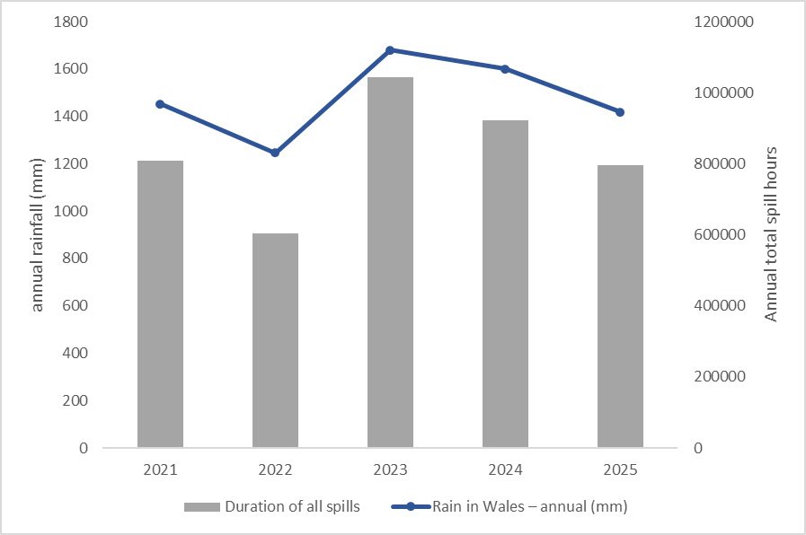 Storm overflow operation is generally considered to be a factor of rainfall – the more it rains, the more an overflow discharges. Welsh Water might point out that although 2025 was dry, in much of Wales rainfall was at or slightly above average.