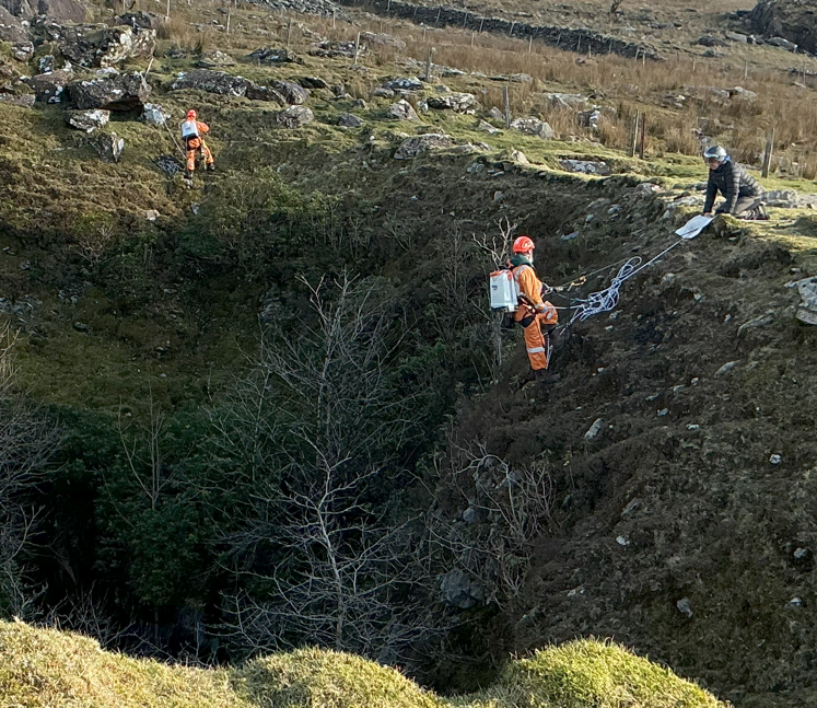 This has involved ropes, helmets, harnesses – and abseiling into steep, unstable gullies to remove rhododendron from places that are otherwise completely inaccessible.